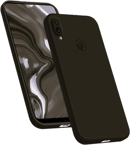 ( Y9 2019 ) جراب حماية خلفي من السيليكون السائل المقاوم للصدمات مبطن بالفرو من الداخل وغطاء كامل للكاميرات متوافق مع هاتف هواوي Y9 2019 (اسود)