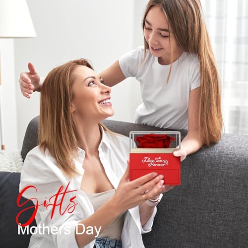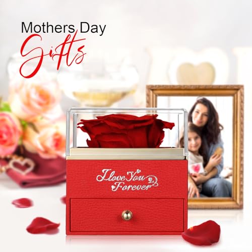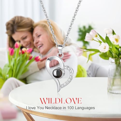 وايلد لوف هدايا عيد الام، وردة حقيقية محفوظة مع قلادة اي لوف يو، هدايا زهور للابد للنساء والام والزوجة والصديقة، هدايا الذكرى السنوية واعياد الميلاد للنساء