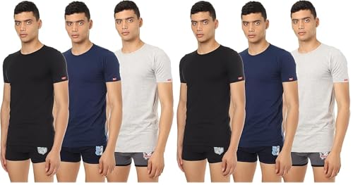 طقم فانلة داخلية برقبة حرف O وبوكسر ريلاكس 3+3 من قطونيل، متعدد الالوان، مزيج القطن