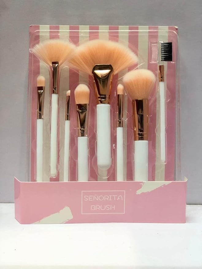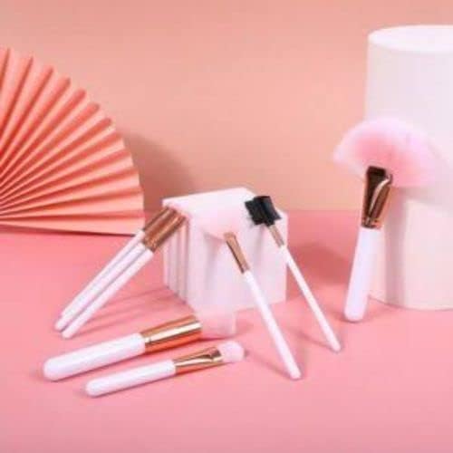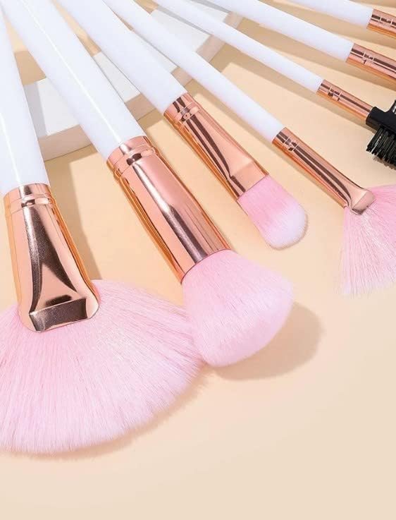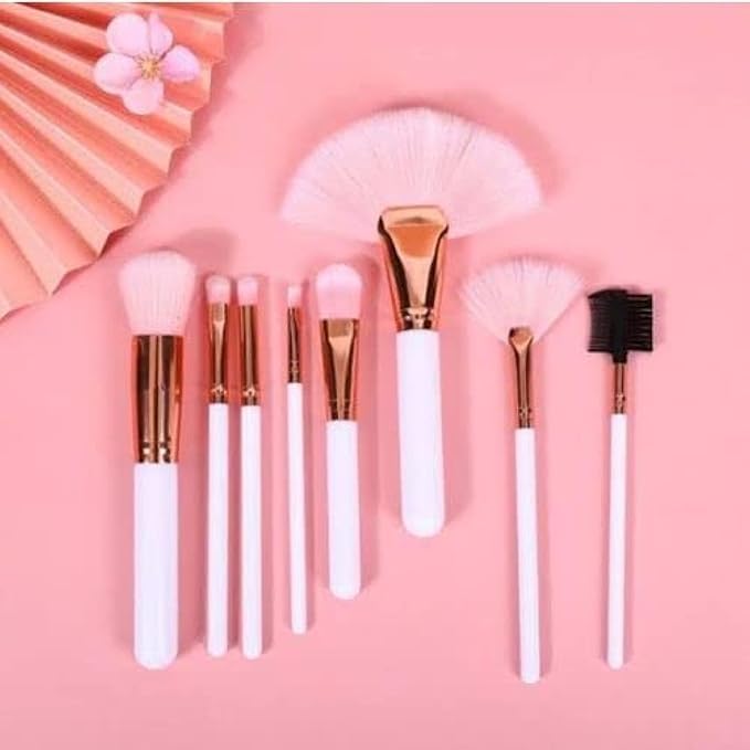مجموعة فرش مكياج كاملة عالية الجودة، ابيض (8 قطع)