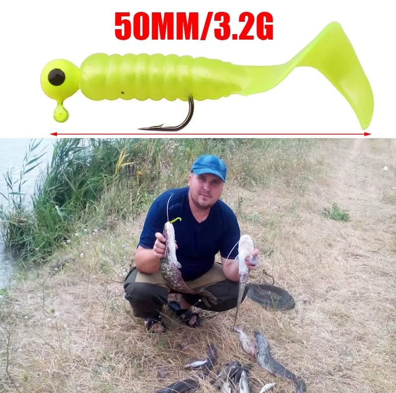 7 قطع طعم صناعى طوله 5 سم لصيد السمك ولونه اخضر اسبيشيل