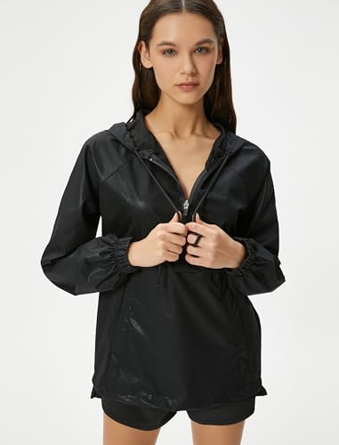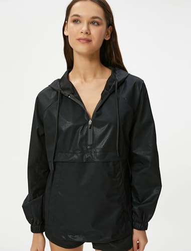 KOTON womens Sport Half Zipper Gleamy Fabric Pockets Hoodie