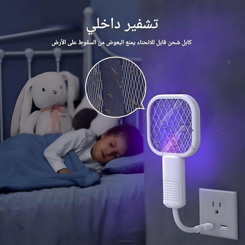 - يتميز مضرب الذباب الكهربائي هذا بضوء LED أرجواني قوي مصمم خصيصًا لجذب البعوض والحشرات المزعجة الأخرى. يعمل قاتل الحشرات بدون أي بخاخات كيميائية ضارة، مما يجعله حلاً آمنًا لبيئة منزلك، مع كونه خاليًا تمامًا من التلوث والإشعاع.