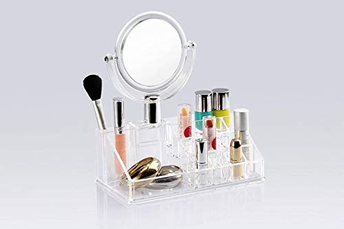 منظم مكياج ومجوهرات مع مرآة شفاف اكريليك