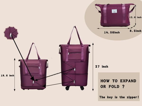 - 【عجلات قابلة للفصل لمزيد من الراحة】: نحن ندرك أنه في بعض الأحيان قد ترغب في استخدام شنطة أمتعتك كشنطة دفل تقليدية أو حملها باليد. لهذا السبب صممنا شنطتنا بعجلات قابلة للفصل. ببساطة قم بإزالة العجلات عندما تفضل حملها أو ربطها بسهولة عندما تحتاج إلى راحة لف أمتعتك.