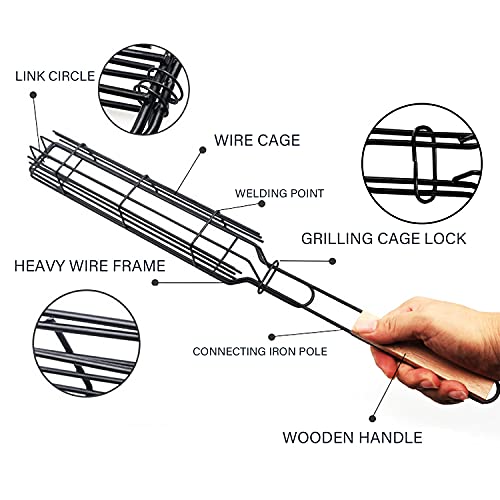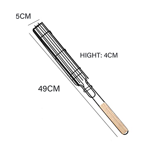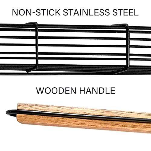سلة شواء السمك مصنوعة من الفولاذ المقاوم للصدأ، أسياخ شواء مربعة الشكل مع مقبض خشبي، شبكة شواء للخضروات المشوية ولحم النقانق من نو باسكيتس (عبوة من قطعتين)