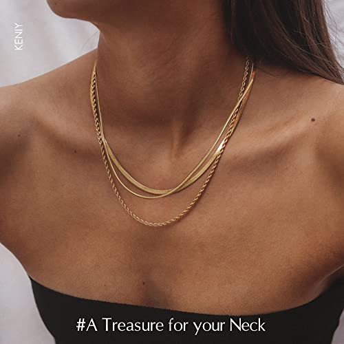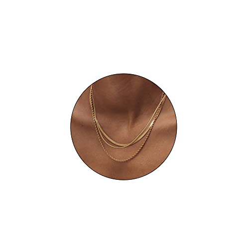 سلسلة ذهبية حريمي مطلية بالذهب عيار 18 قيراط ثعبان رفيعة عصرية مكتنزة متعددة الطبقات بتصميم وحلقات واسعة متصلة ويدوية الصنع من الزركونيا ومطلية 14 كيني