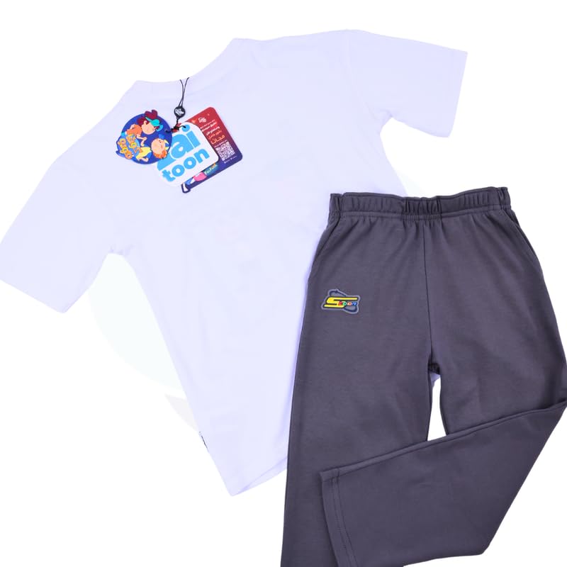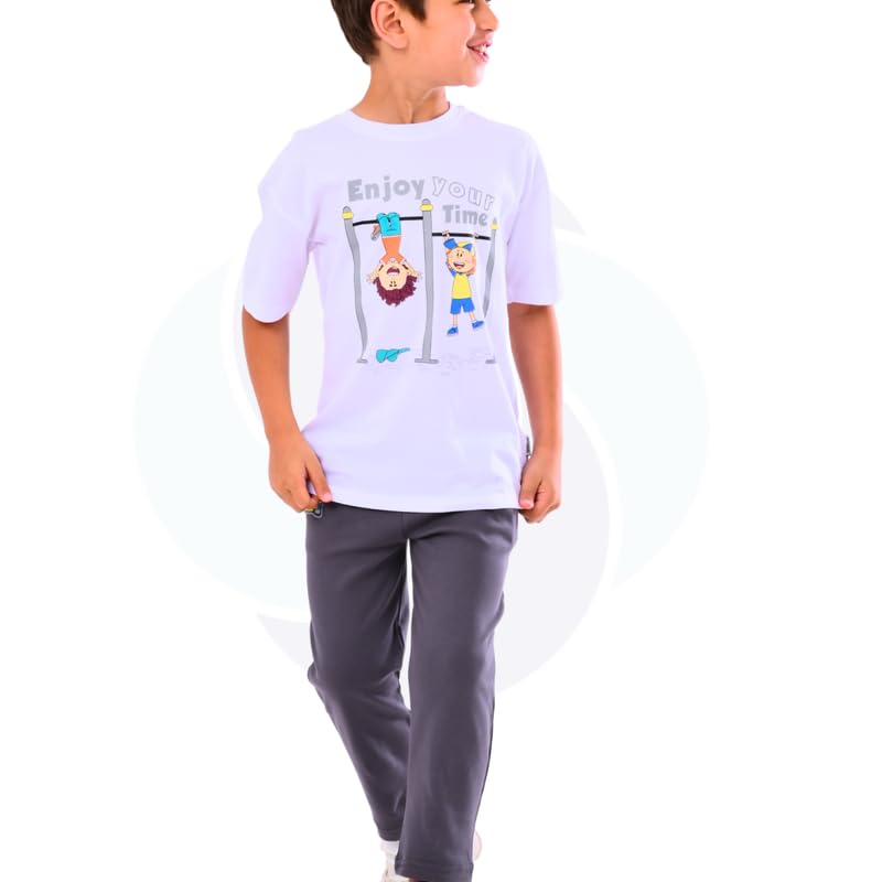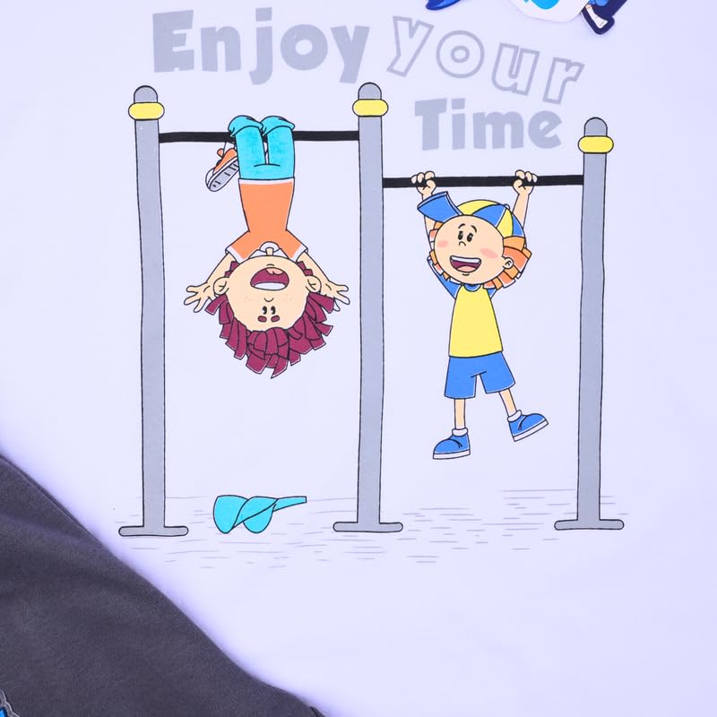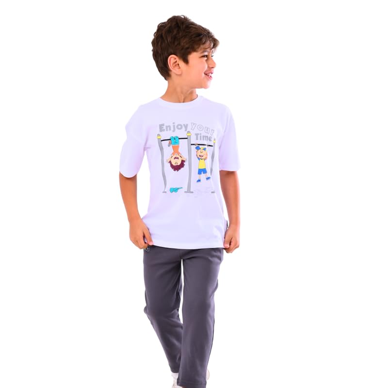 كوتون زون طقم ملابس خارجية من القطن للاولاد من كودو مودو (تي شيرت ابيض - بنطلون رمادي) مقاس