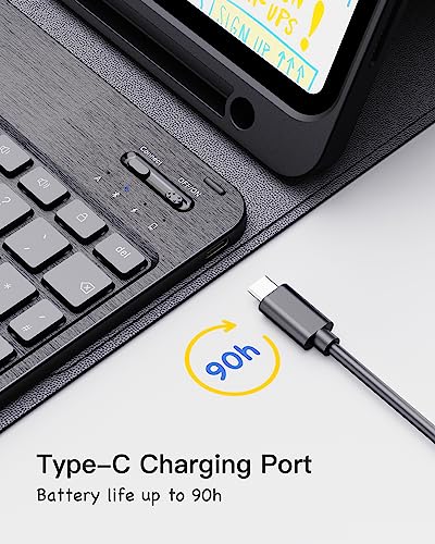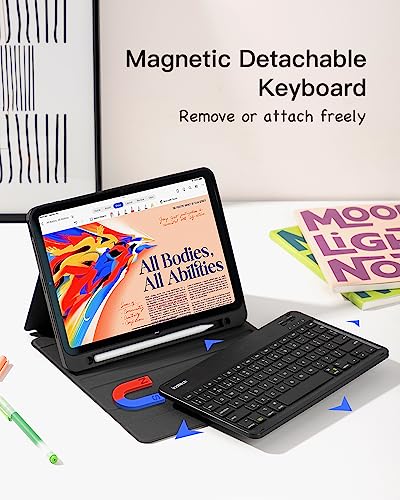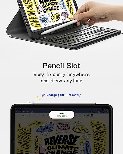 حافظة لوحة مفاتيح من اناتيك متوافقة مع ايباد الجيل العاشر 2022 10.9 بوصة اير 6 2024 11 5 4 جيل برو الرابع الثالث الثاني الاول حامل قلم قابل للفصل KB04002 أسود بلوتوث