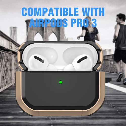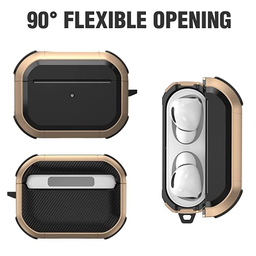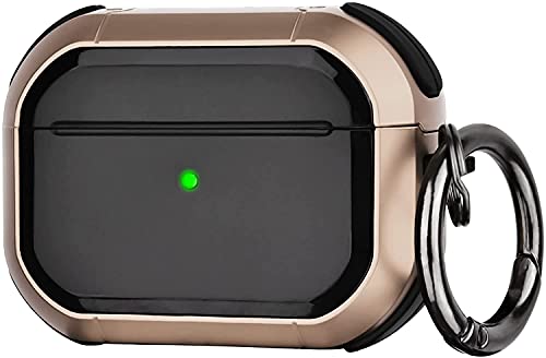 جراب سماعة ابل ايربودز برو بسلسلة مفاتيح لحماية كاملة ضد الصدمات من البولي يوريثين المقاوم للحرارة اللين للنساء والرجال باظهار لمؤشر LED الامامي، لون ذهبي، سيليكون