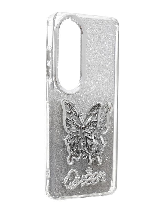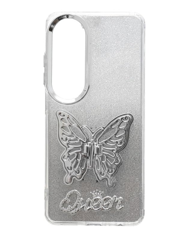جراب حماية خلفي لامع بحامل مخفي على شكل فراشة ثلاثية الأبعاد لموبايل أوبو A60 من سي اف اس، فضي