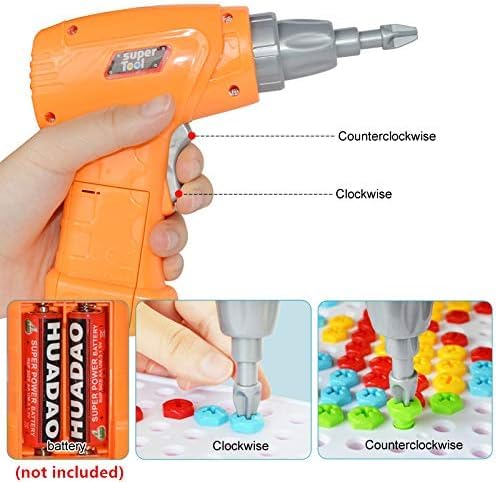 - [مثقاب كهربائي آمن وسهل الاستخدام]: يُساعد المثقاب الكهربائي (اللعبة) الأطفال على تطوير مهاراتهم الحركية الدقيقة بطريقة آمنة وممتعة، مع تصميم مناسب لليد الصغيرة وسرعة دوران معتدلة.