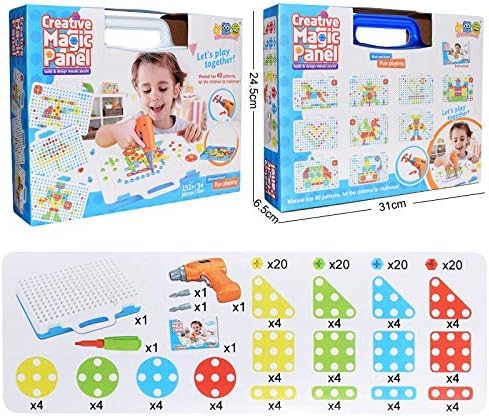 لعبة تركيب فسيفساء إبداعية للأطفال من Next Store - مثقاب، براغي، قطع فك وتركيب، لعبة تعليمية لتنمية المهارات للأولاد والبنات