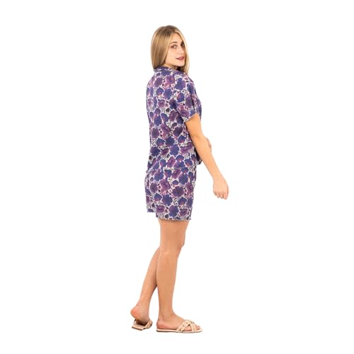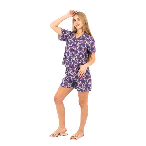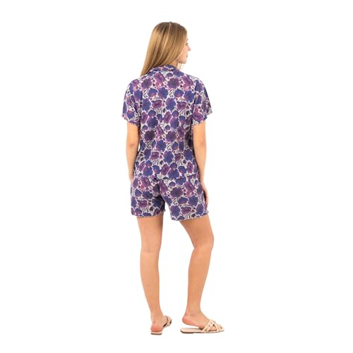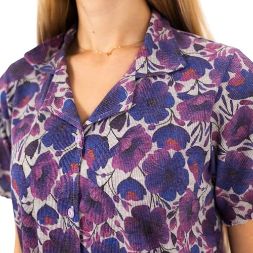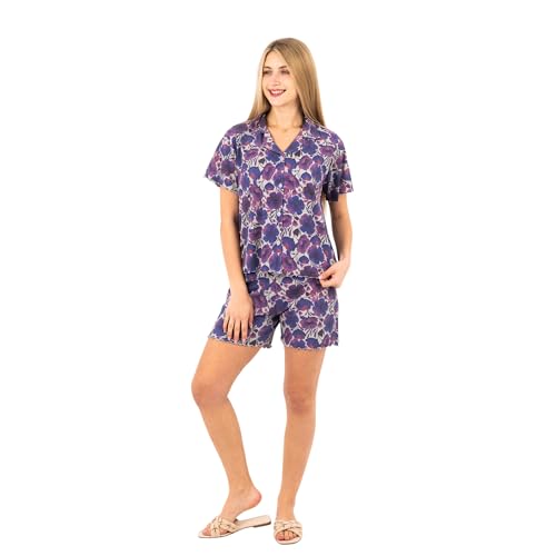طقم بيجامة كلاسيك للنساء من بلوزة بأزرار وشورت من القطن بنسبة 100% بطبعة زهور، ملابس نوم صيفية خفيفة الوزن مريحة