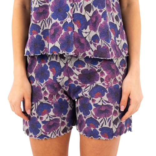 طقم بيجامة كلاسيكي للنساء | بلوزة وشورت من القطن بنسبة 100% بطباعة زهور