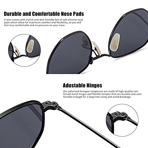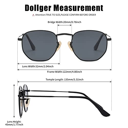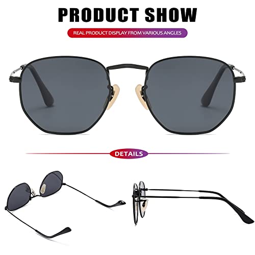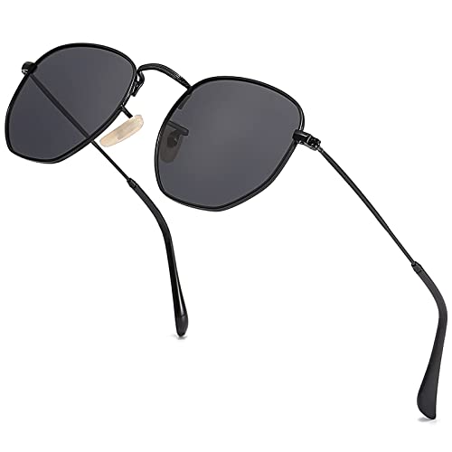 نظارات شمس بعدسات بولارايز للنساء والرجال بتصميم فينتيدج وشنبر معدني مربع للحماية من الاشعة فوق البنفسجية 400, إطار أسود / عدسة سوداء