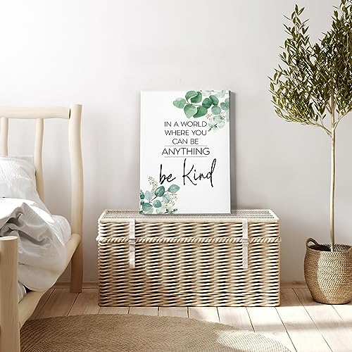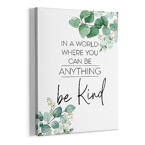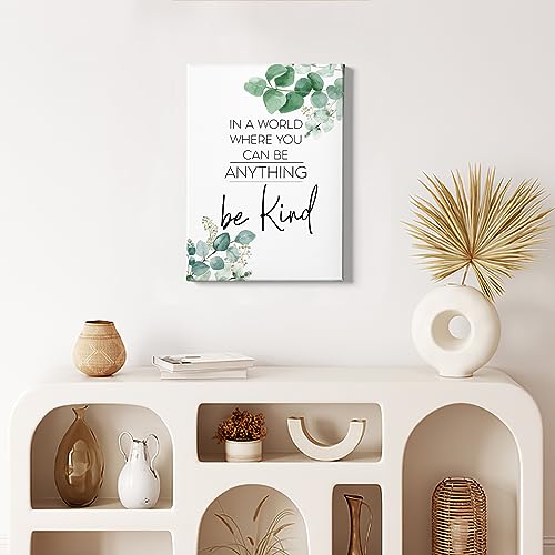 لوحة فنية جدارية من القماش مؤطرة بعبارة In A World Where You Can Be Anything Kind هيوكس تحفيزية لنبات الاوكالبتوس لتزيين المنزل وغرفة المعيشة النوم والحمام والمكتب 11 × 14 انش متعدد