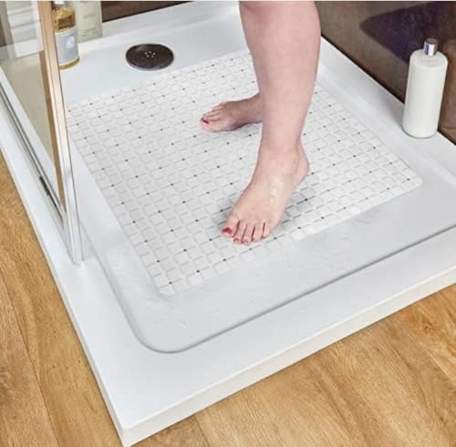 دعاسة حمام مربعة غير قابلة للانزلاق – مقاومة للعفن والبكتيريا مع أكواب شفط وفتحات تصريف – قابلة للغسل 55×55 سم (بيج)