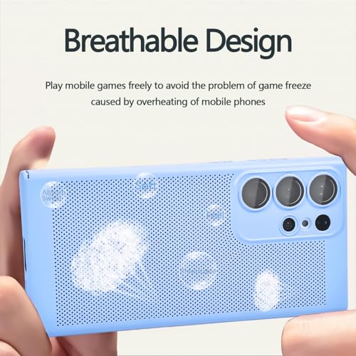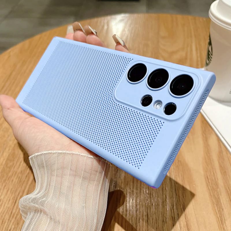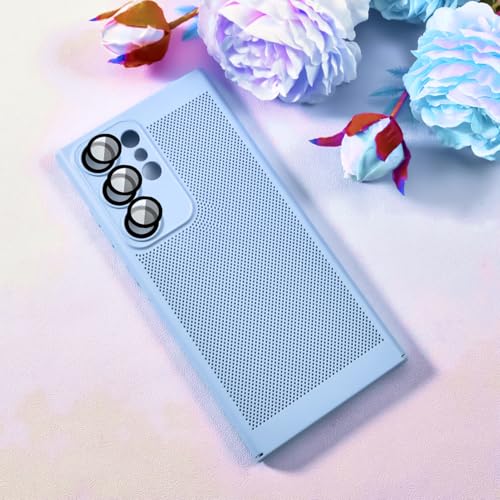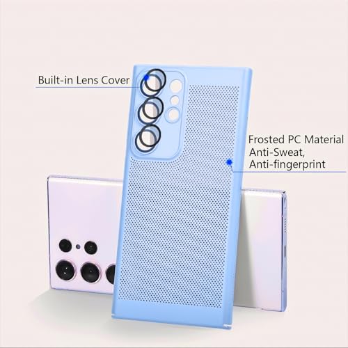 حافظة حماية لموبايل سامسونج جالكسي S24 الترا بشبكة الجيل الخامس 5G لتبديد الحرارة مع واقي عدسة كاميرا مدمج بتصميم نحيف وجيد التهوية ومضاد لبصمات الأصابع من البولي كربونات الصلب من دلع موبايلك - لون
