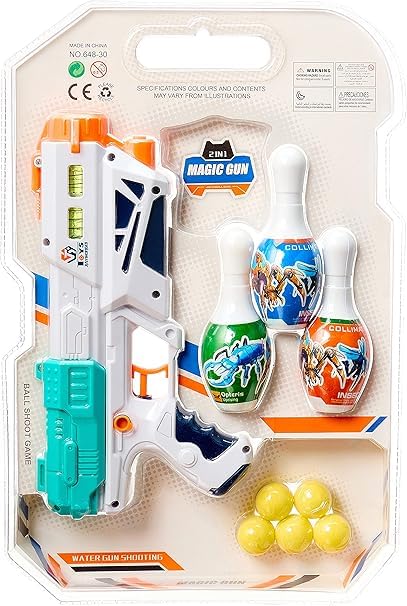 مسدس متعدد الاستخدامات 2 في 1 لإطلاق الماء وكرات ناعمة مع أهداف دبوس بولينج ملونة للأطفال من Next Store، لعبة ممتعة وآمنة للنشاطات الخارجية.