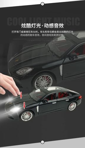 نموذج سيارة بورشه باناميرا معدني مصبوب بمقياس 1:18 بلون أسود مع أبواب وغطاء محرك قابل للفتح