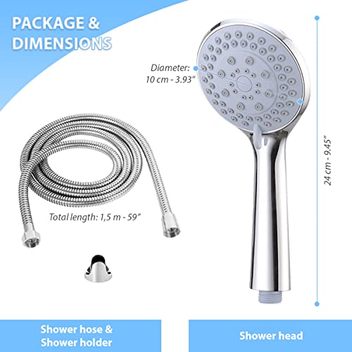 رأس دش مع خرطوم دش مرن وحامل دش بـ5 أوضاع للتدليك، رأس دش للحمام مع خرطوم عالي الضغط من كريسولوكس
