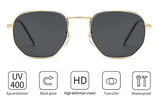 نظارة شمس بتصميم سداسي مربع باطار معدني مضلع، للنساء والرجال بعدسات بولارايز للواقية من الاشعة فوق البنفسجية كيلينز