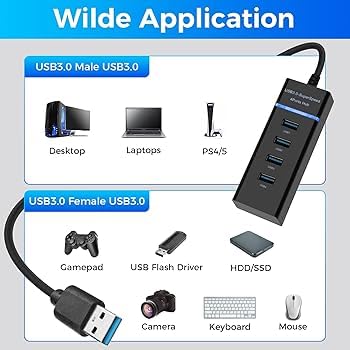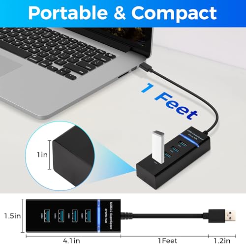 - موزع USB بـ4 منافذ 3.0، بيانات 5 جيجابايت في الثانية متعدد موسع محول رصاص لأجهزة اللابتوب وذاكرة فلاش وهارد ديسك المحمول والمزيد، متوافق مع أجهزة منفذ