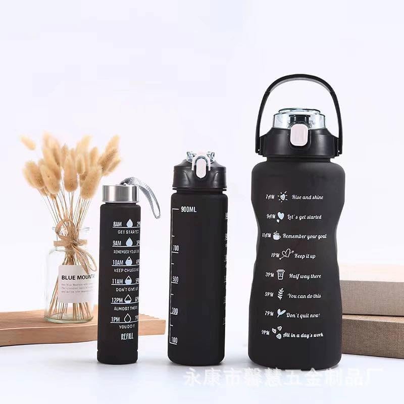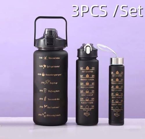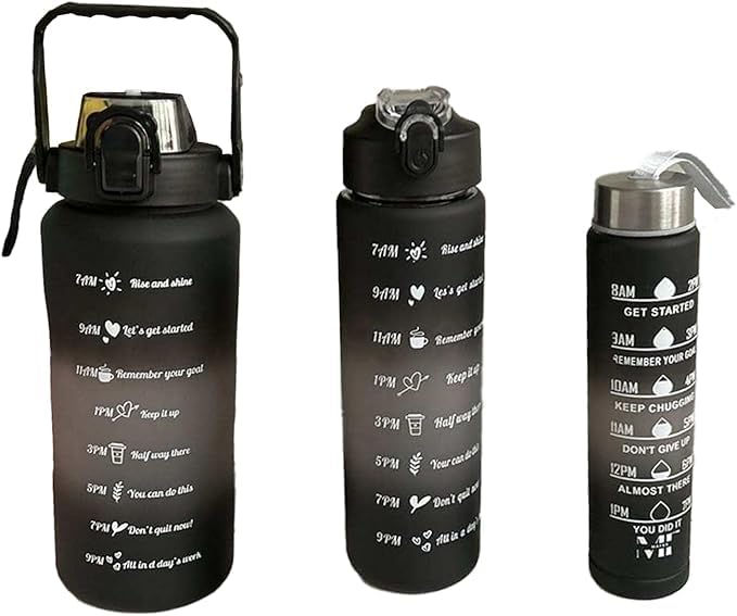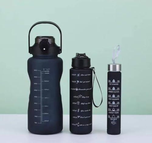 مجموعة زجاجات مياه تحفيزية من 3 قطع، سعة 2500 مل، 1000 مل، 550 مل، خالية من البيسفينول ايه، للبالغين، علامات زمنية وحامل موبايل للفصول الدراسية عبر الانترنت والمكتب (عبوة من 3 قطع)