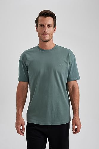 تي شيرت سادة برقبة دائرية ضيقة من ديفاكتو وقصة كبيرة الحجم للرجال بيسكس