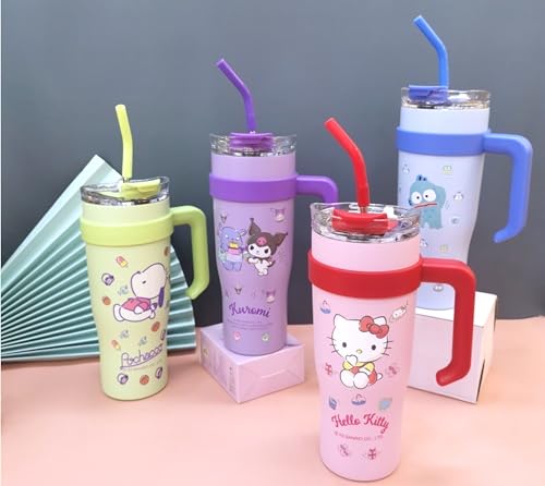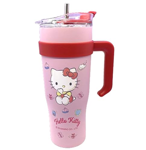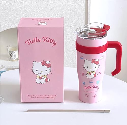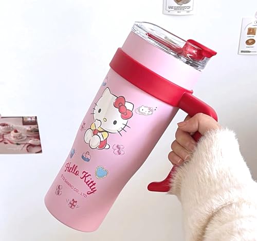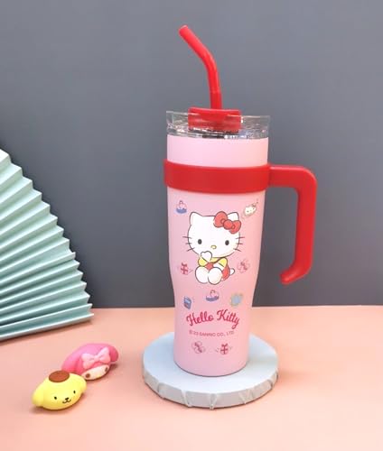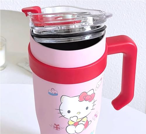 كوب هالو كيتي معزول من الفولاذ المقاوم للصدأ بغطاء وشفاطة ومقبض من ماني رينبوز، سعة 1.2 ل، مقاس كبير جداً