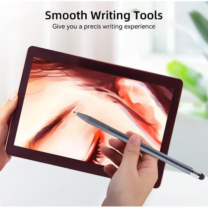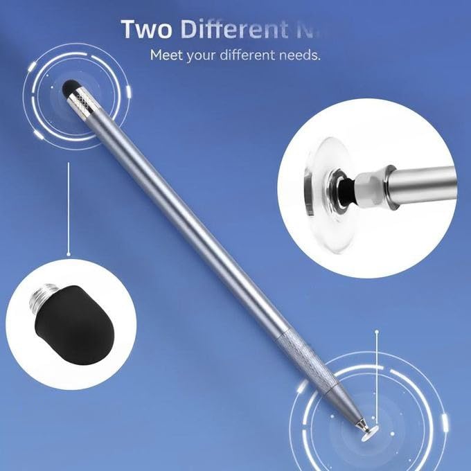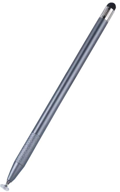 - قلم ستايلس 2 في 1 للتكنولوجيا للرسم والشاشات اللمسية متوافق مع أجهزة iOS وأندرويد والآي باد مناسب للاستخدام كقلم لمس ذكي ولأجهزة التابلت من كيه ام، لون رمادي