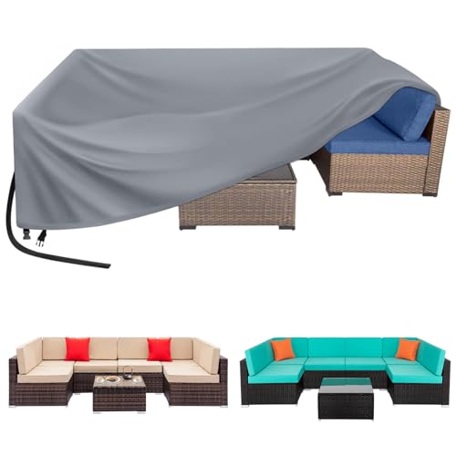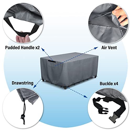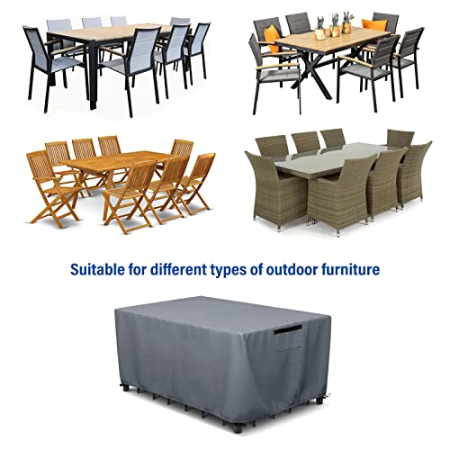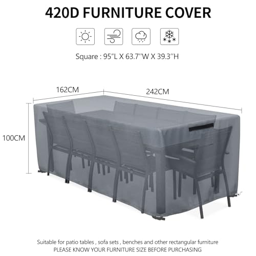 مفرش ترابيزة مكعب لاثاث الحديقة، مفرش اثاث مربع للاماكن الخارجية مع رباط مقاوم للرياح، اغطية طاولات مقاومة للماء للفناء، لطقم اثاث الحديقة (242×162×100 سم، رمادي)