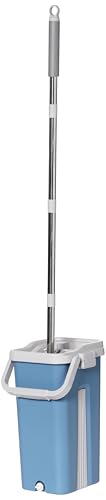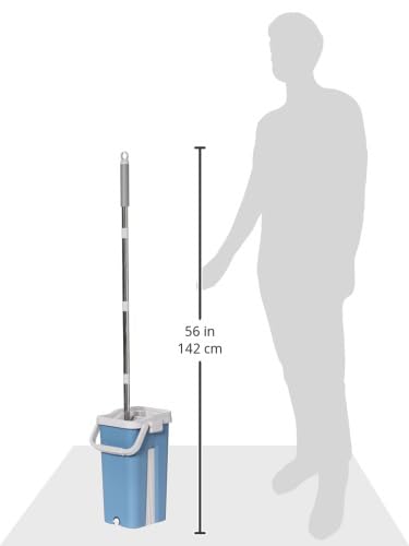 ممسحة مسطحة مطورة بدون استخدام اليدين مصنوعة من المايكروفايبر برأس مرن 360 درجة (38 × 12.5 سم) مع منشفة فائقة الامتصاص ومقبض من الستانلس ستيل قابل للتمدد