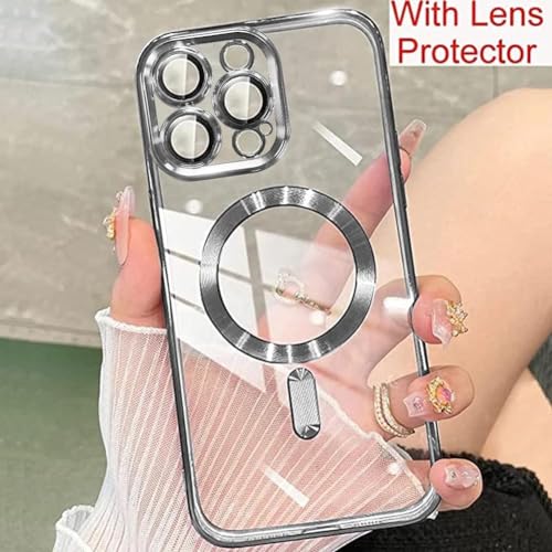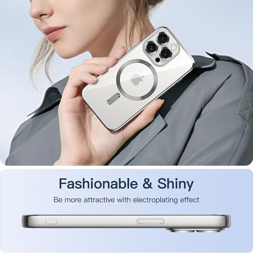 جراب جرابست لموبايل ايفون 15 برو ماكس 6.7 انش، حماية كاملة لعدسة الكاميرا، متوافق مع الشحن اللاسلكي ماج سيف، غطاء موبايل ناعم مقاوم للصدمات من البولي يوريثين الحراري (فضي)، حافظة بسيطة