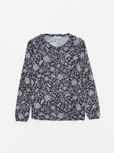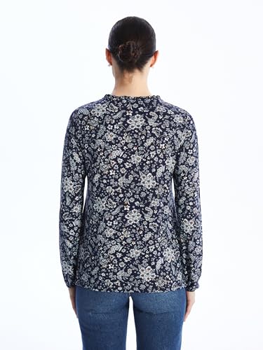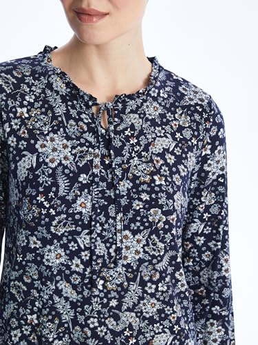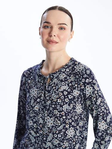 LC واكيكي بلوزة منقوشة باكمام طويلة ورقبة برباط للنساء S46652Z8-Lsh-1 L كحلي مطبوعة