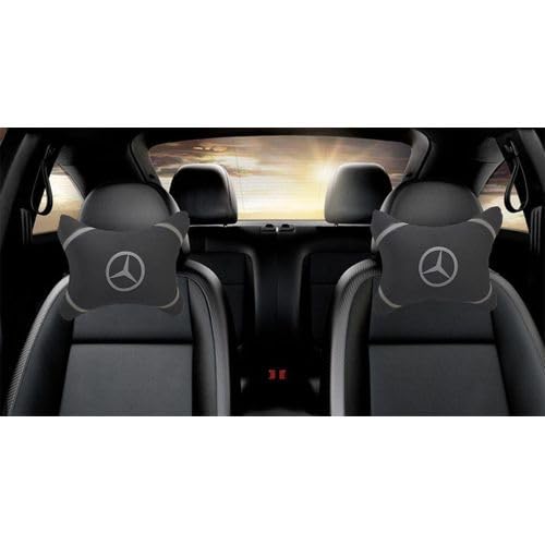 2 قطعه مسند رأس للسيارة بشعار مرسيدس– مخدة رقبة مريحة للقيادة الطويلة – تصميم أنيق – دعم للرقبة – متوافق مع جميع السيارات_كسسوارات سيارات مرسيدس _دعم رقبة أثناء القياد