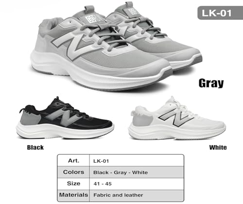 حذاء رياضي كاجوال للرجال -مريح جدا-خفيف الوزن- خامات طبيعيه مقاومة للبكتريا والفطريات والروائح الكريهه – الألوان {رمادى & أسود & أبيض} - (LK01)