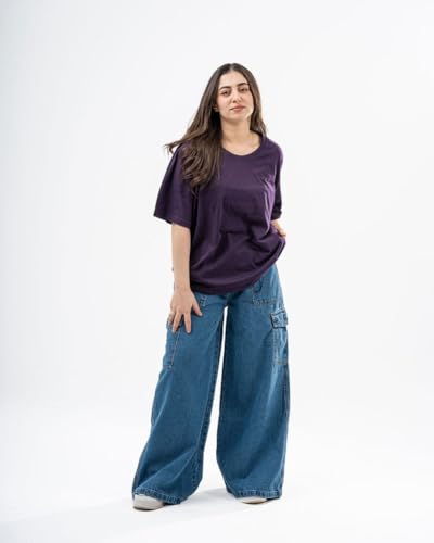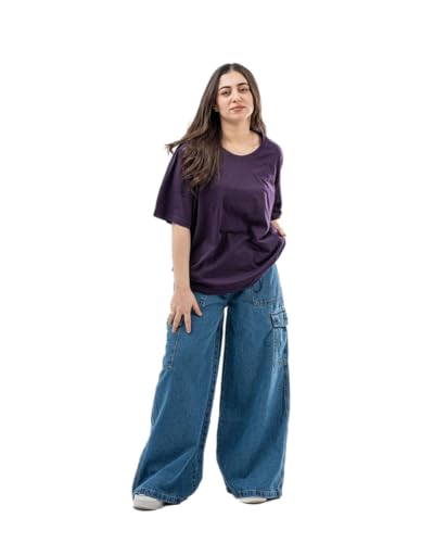 تيشرت سادة نصف كم للنساء من ار اف ايه، مقاس ميديوم، لون أرجواني