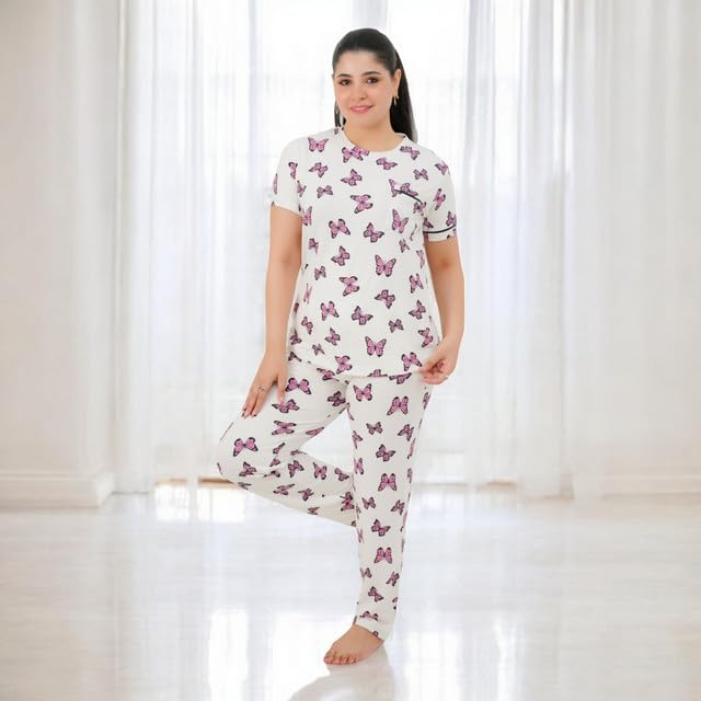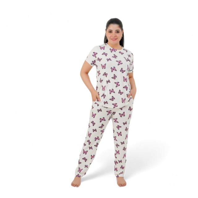 طقم بيجامة حريمي - بيجامة للنساء صيفي - طقم 2 قطعة بنطلون وتيشيرت - منقوش بروسومات مختلفة ومصممة خصيصا لتوفير الراحة والانتعاش في النوم كود 7087-P