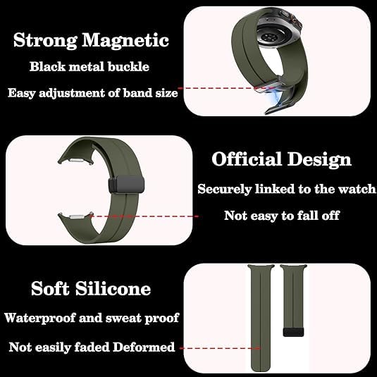 سوار سيليكون مغناطيسي بديل لساعة سامسونج جالاكسي ووتش الترا 7 مقاس 47 ملم إصدار 2024 للرجال والنساء