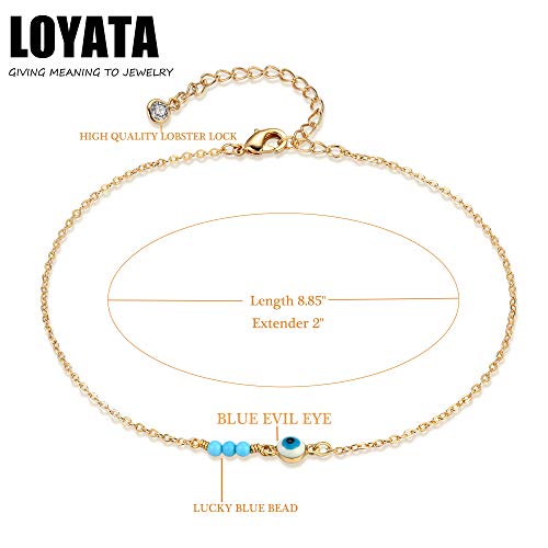 خلخال انيق ولطيف بخرز صغير مطلي بالذهب 14 قيراطا مرصع باحجار زركونيا مكعبة بيضاء/شراشيب متقاطعة/حجرعين الحسد/حجر القمر للحظ بتصميم بوهو للنساء من لوياتا