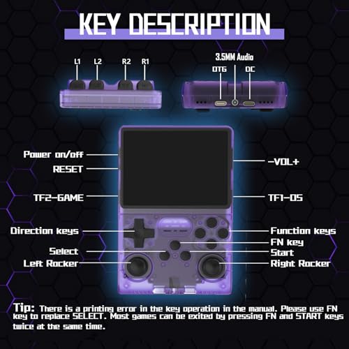 جهاز تشغيل ألعاب فيديو رقمية محمول باليد 30000 في 1 R40S برو بشاشة IPS 3.5 بوصة وبطارية 3800mAh، جهاز ألعاب اركيد للأطفال فوق 12 سنة مع بطاقة TF 256G من FHYRGF، أرجواني شفاف