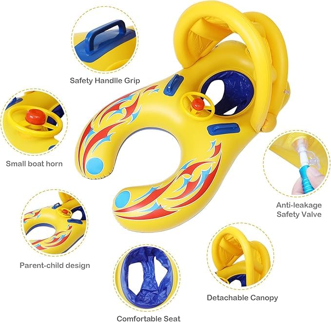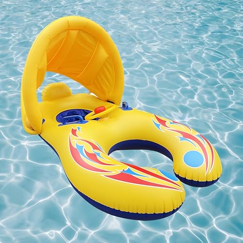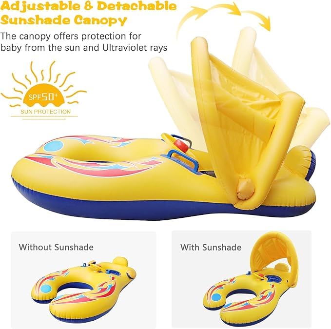 عوامة حمام سباحة قابلة للنفخ مع مظلة قابلة للفصل، عوامات تفاعلية للآباء والأطفال الصغار للسباحة في حمام السباحة، عوامات حمام السباحة للرضع مع مقبض للصيف