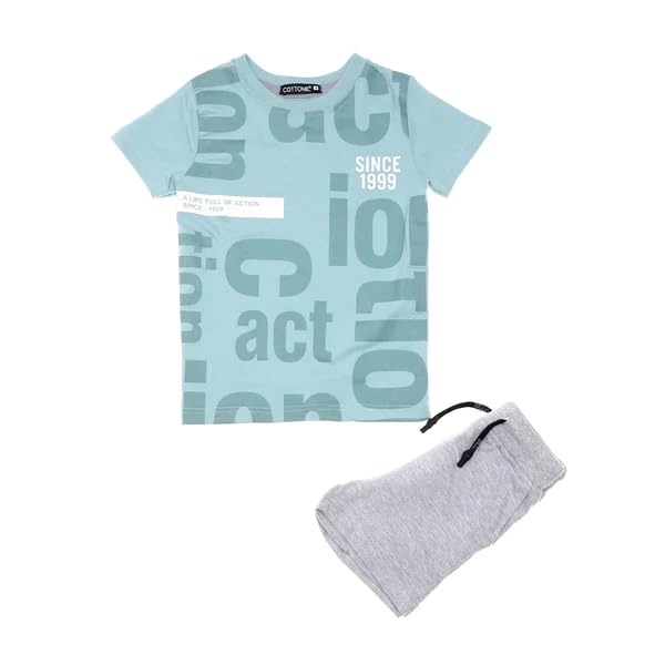 قطونيل طقم بيجامة قطن مكون من تيشرت صيفي وشورت للاولاد بعمر 4 سنوات، متعدد الالوان