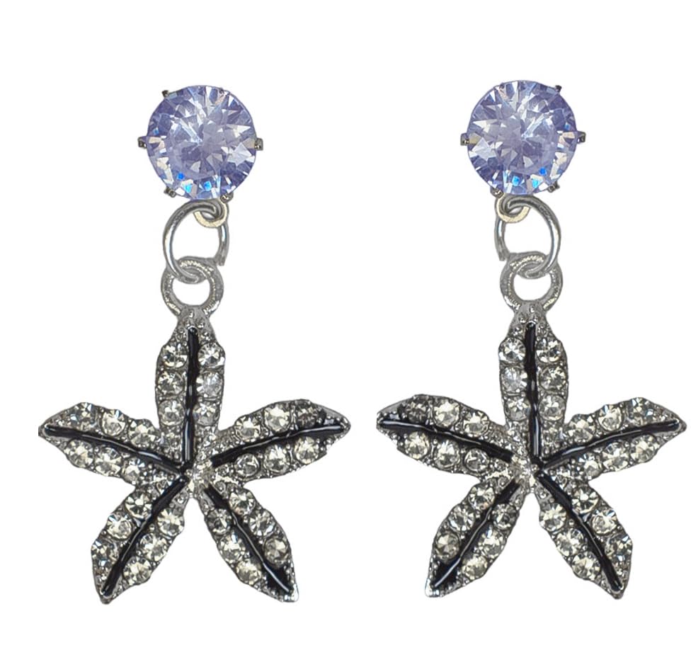 حلق نسائي نجمة بحر فضي واسود