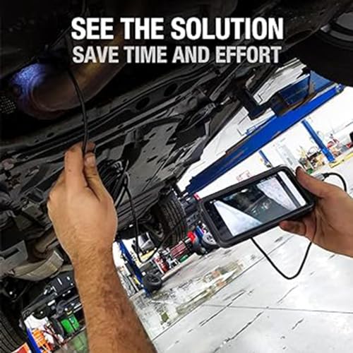 - كابل شبه صلب ومسبار مقاوم للماء: تنحني الكاميرا المرنة بحرية وتبقى شبه صلبة. 5 م من الكابل شبه الصلب ينفتح ويلتف بسرعة لتوفير المرونة والصلابة. يسمح التصميم المقاوم للماء بتصنيف IP67 للكاميرا بالعمل لمدة تصل إلى ساعة واحدة تحت 1 م من الماء.