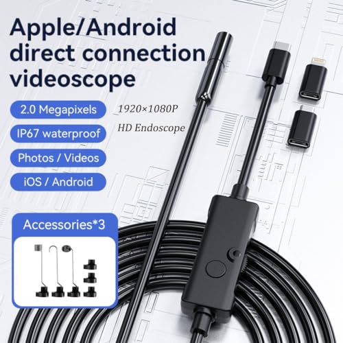 كاميرا فحص منظار داخلي مع إضاءة 8.0 ملم مقاومة للماء بتصنيف IP67 لمقاومة المياه والغبار لموبايلات أندرويد وآيفون وآيباد، منظار بوريسكوب 1080P HD من جاوينتيني (عدسة مزدوجة، 10 م)