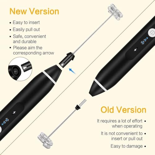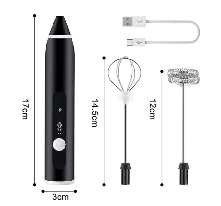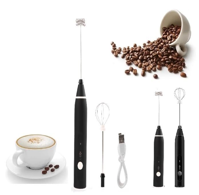 مضرب حليب و قهوة كهربائى - 3 مستويات سرعة - مزود ب USB لإعادة الشحن - مع رأسين خفق - مثالي للقهوة واللاتيه والكابتشينو - تصميم محمول أنيق - لونين مختلفين ( أسود , أبيض) (Black)
