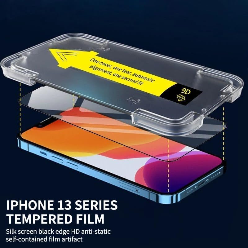 شاشة حماية من الزجاج المقوى بدرجة صلابة 9 بإطار سهل التركيب وتغطية كاملة ثلاثية الأبعاد لموبايل آيفون 13 برو من اروس، عبوتان، شفاف